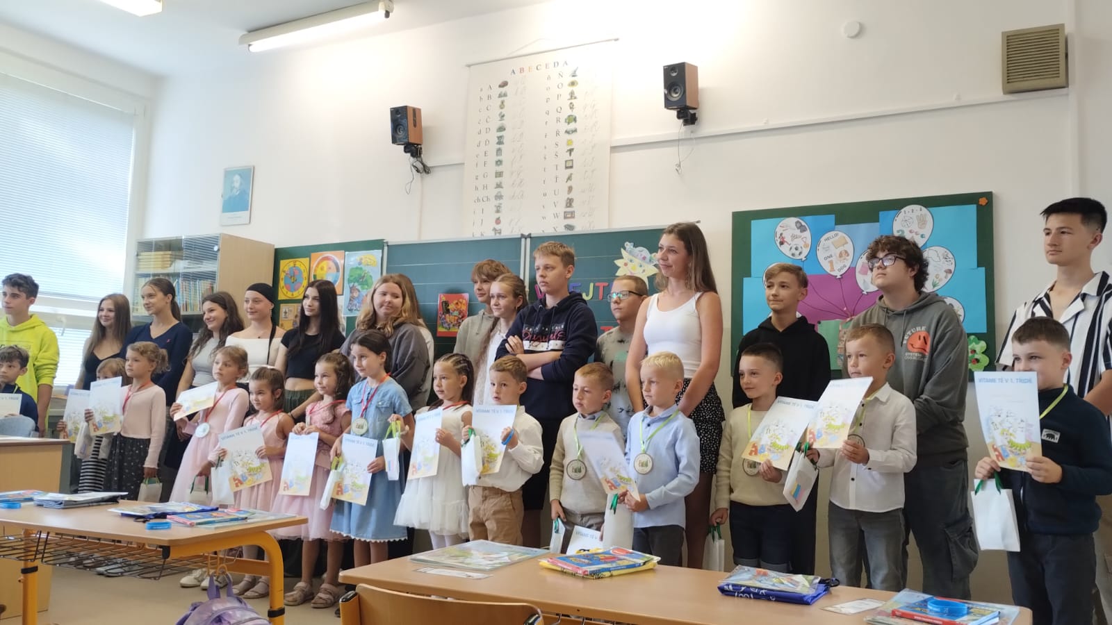 I v letošním školním roce pokračujeme v projektu KAŽDÝ PRVŇÁK MÁ SVÉHO DEVÁŤÁKA. Prvňáčci z "áčka" spolupracují s 9.A, prvňáčci z "béčka" s 9.B a přípravná třída s 9.C.