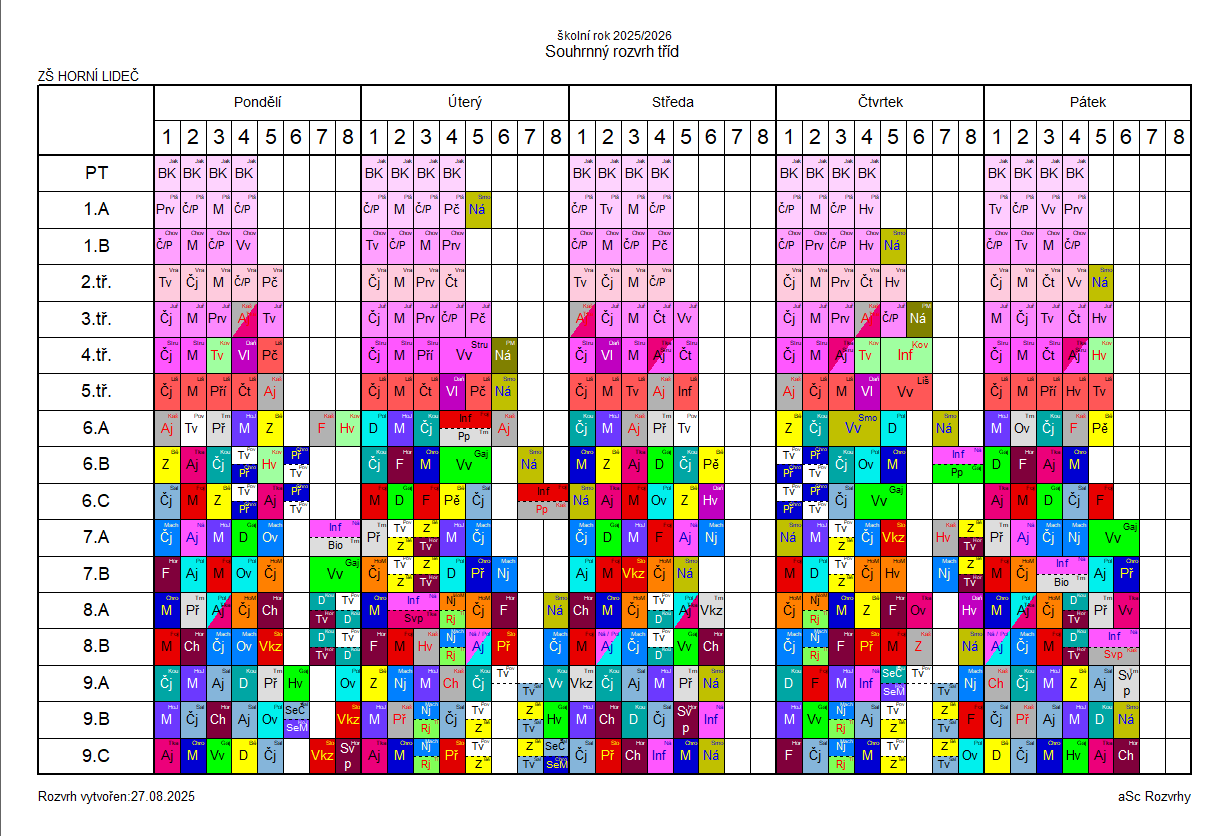 Zveřejňujeme prozatimní rozvrh pro vaši informaci. Finální rozvrh bude samozřejmě k dispozici posléze v aplikaci Edupage. Klikněte na obrázek pro zvětšení.